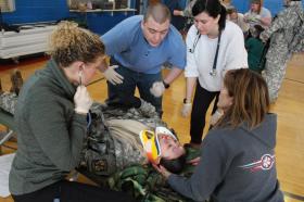 The NMU School of Nursing typically holds trauma response simulations in a lab with mannequins. But for the first time Thursday afternoon, it collaborated with the ROTC Wildcat Battalion. The mock bomb training exercise allowed senior nursing students to interact with and deliver treatment to human patients out in the field.