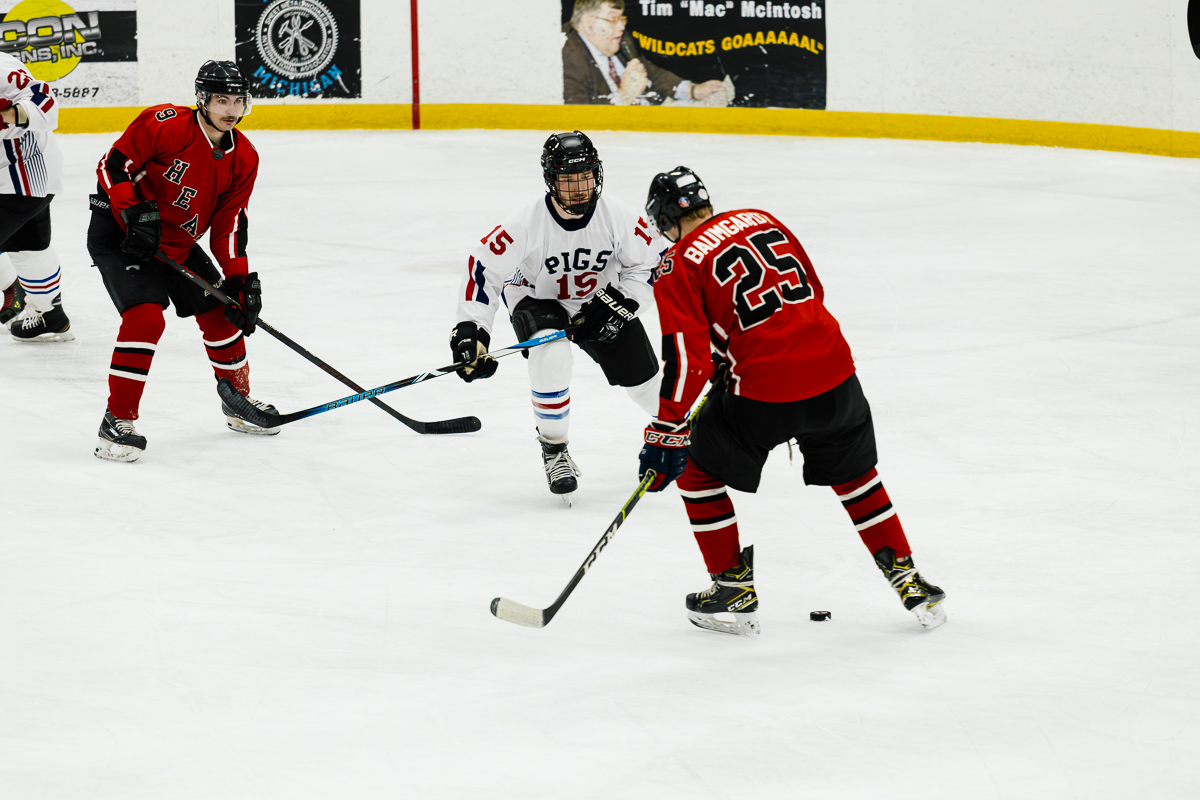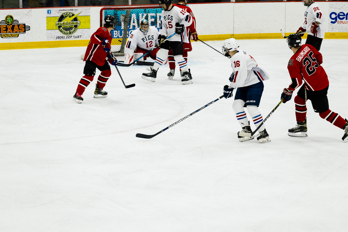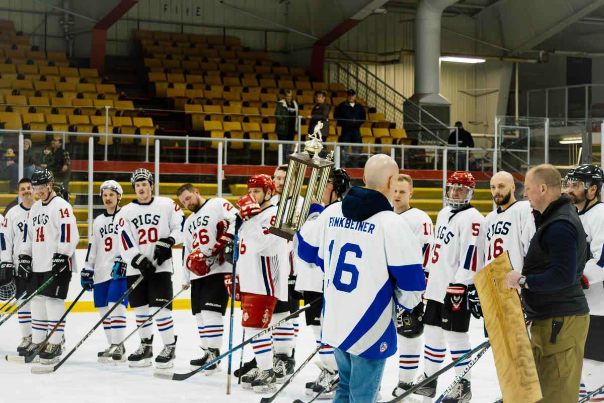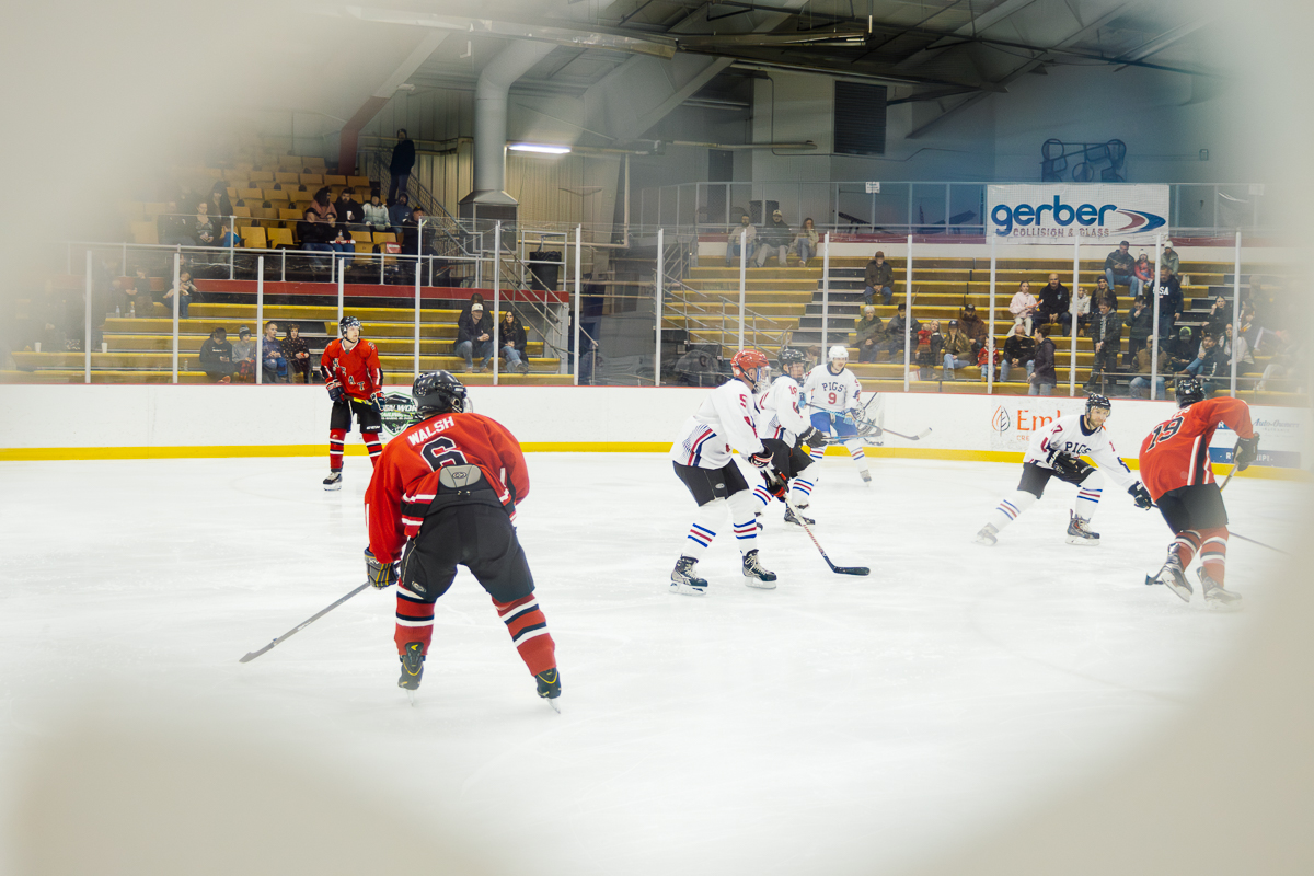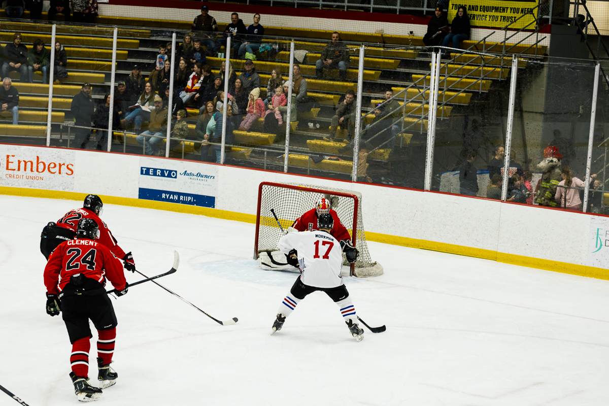 The exhibition first began when Marquette City Police Officer Larry Grimsby, Michigan State Trooper Dave Rotteman, and Marquette City Firefighter Dan Dagenais wanted to raise money to assist a family with three young children whose home had just been lost to a fire. Flash forward 40 years and today the Pigs-N-Heat Charity hockey game draws between 2,500–3,000 people and raises approximately $15,000 to $20,000. While there is a trophy to play for and a bit of an established rivalry, this friendly game is also a way to honor and celebrate both Firefighter and Policeman of the year.