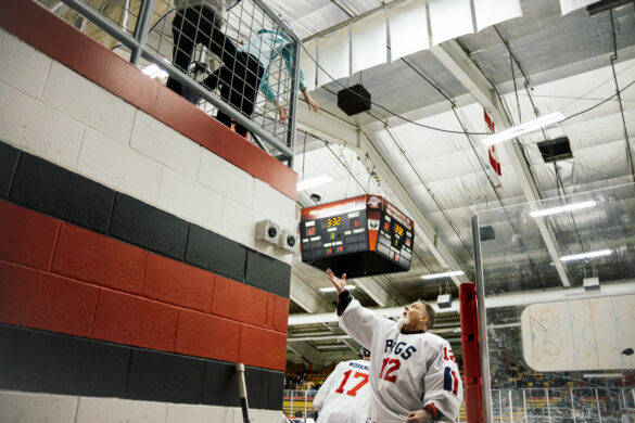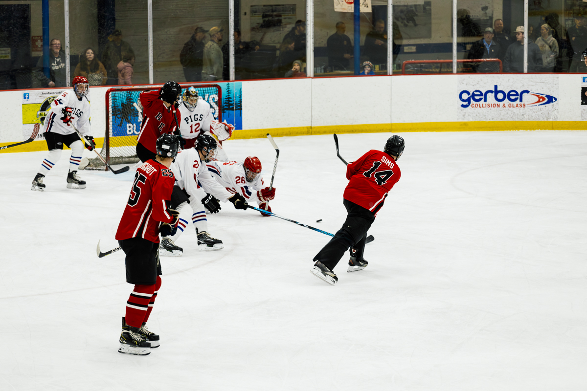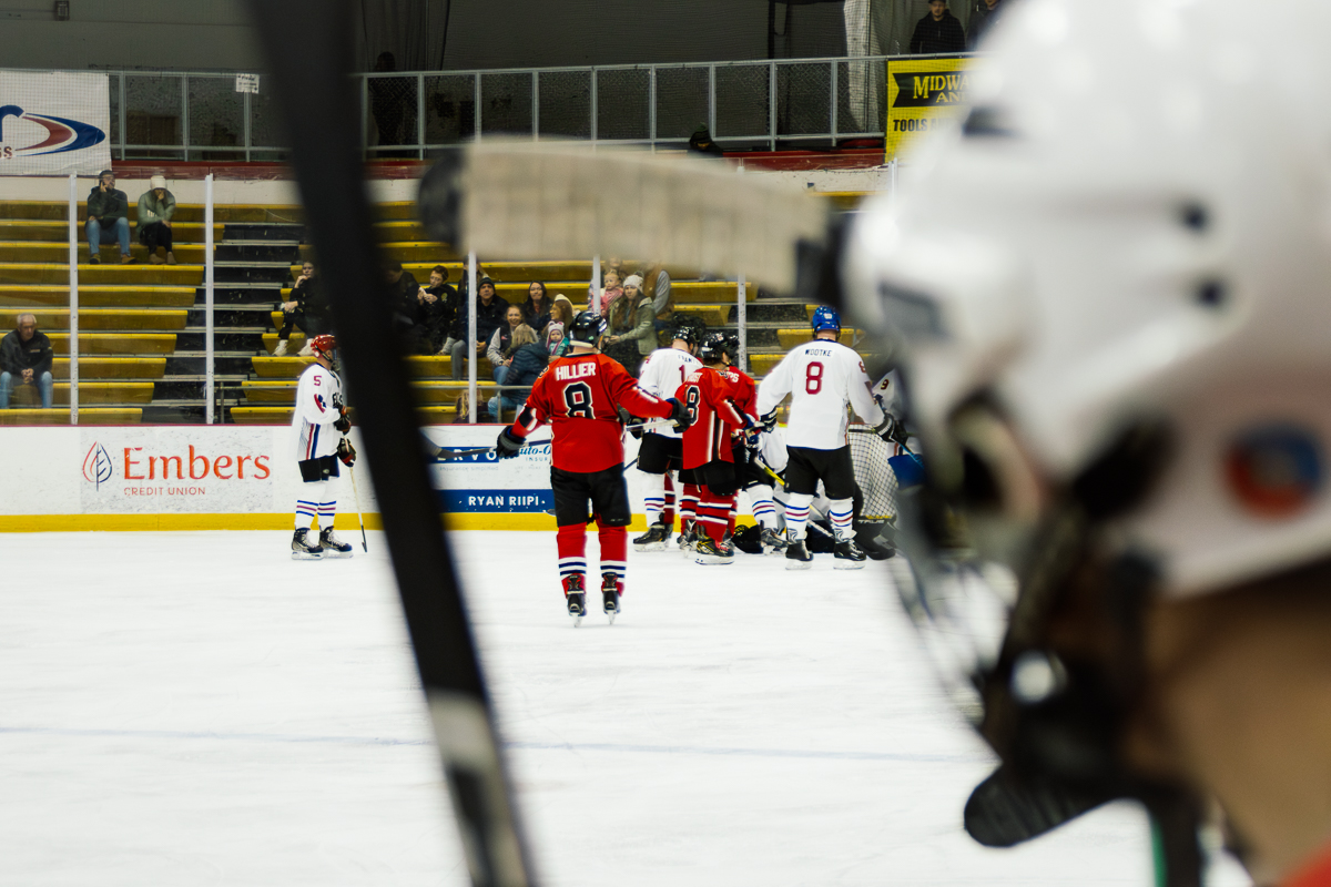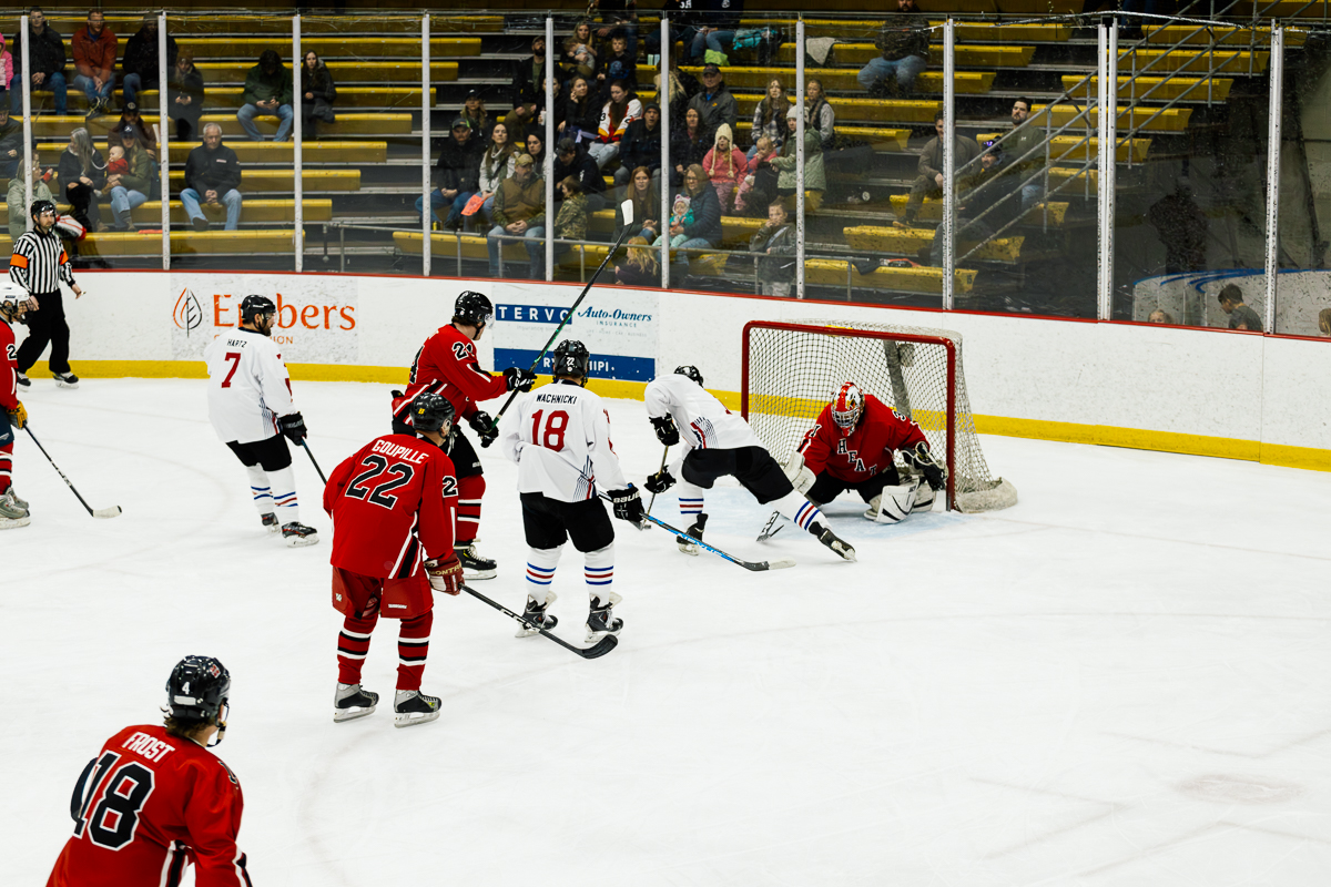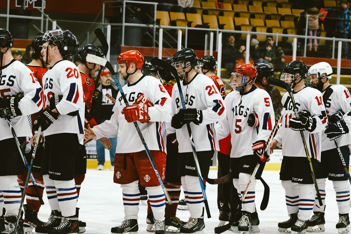 The exhibition first began when Marquette City Police Officer Larry Grimsby, Michigan State Trooper Dave Rotteman, and Marquette City Firefighter Dan Dagenais wanted to raise money to assist a family with three young children whose home had just been lost to a fire. Flash forward 40 years and today the Pigs-N-Heat Charity hockey game draws between 2,500–3,000 people and raises approximately $15,000 to $20,000. While there is a trophy to play for and a bit of an established rivalry, this friendly game is also a way to honor and celebrate both Firefighter and Policeman of the year.